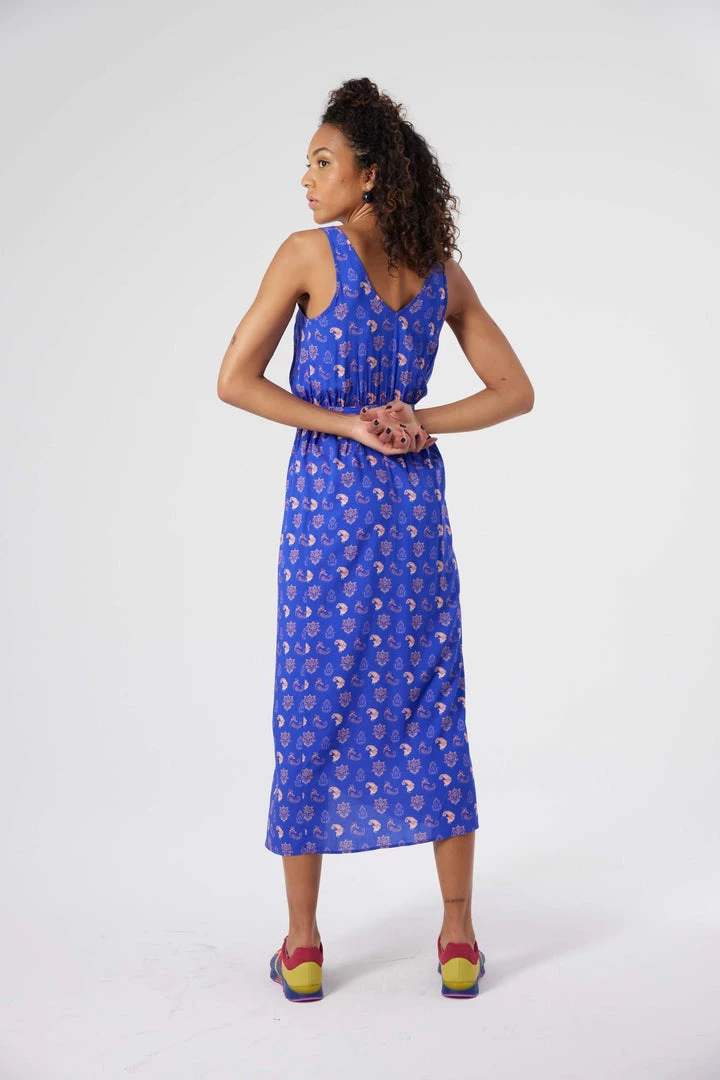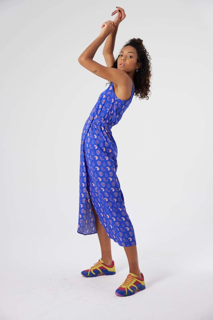 Crafted in soft and matte viscose, our wrap Austria dress is one of the iconic Heimstone pieces. Designed in a majestic blue and rose Maharaja print, it features a fitted and long cut with a tight waistline, opening the up the legs.