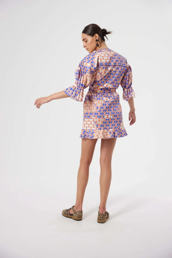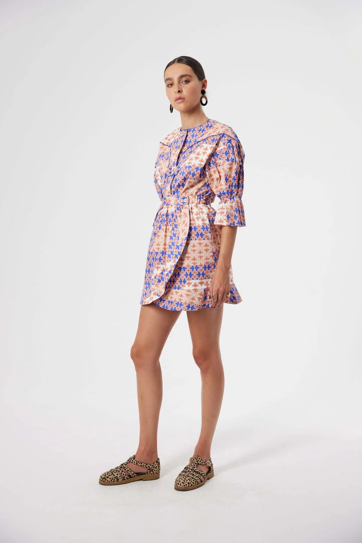 Crafted in a delicate cotton, the Beausserie shirt infuses in the colour sycretism of the refined Mosaic print. The rich and meticulous piping details in the round collar and the chest finish it all. The loose fitting of the piece goes hand to hand with a pleasant button placket and mid-puffed sleeves.