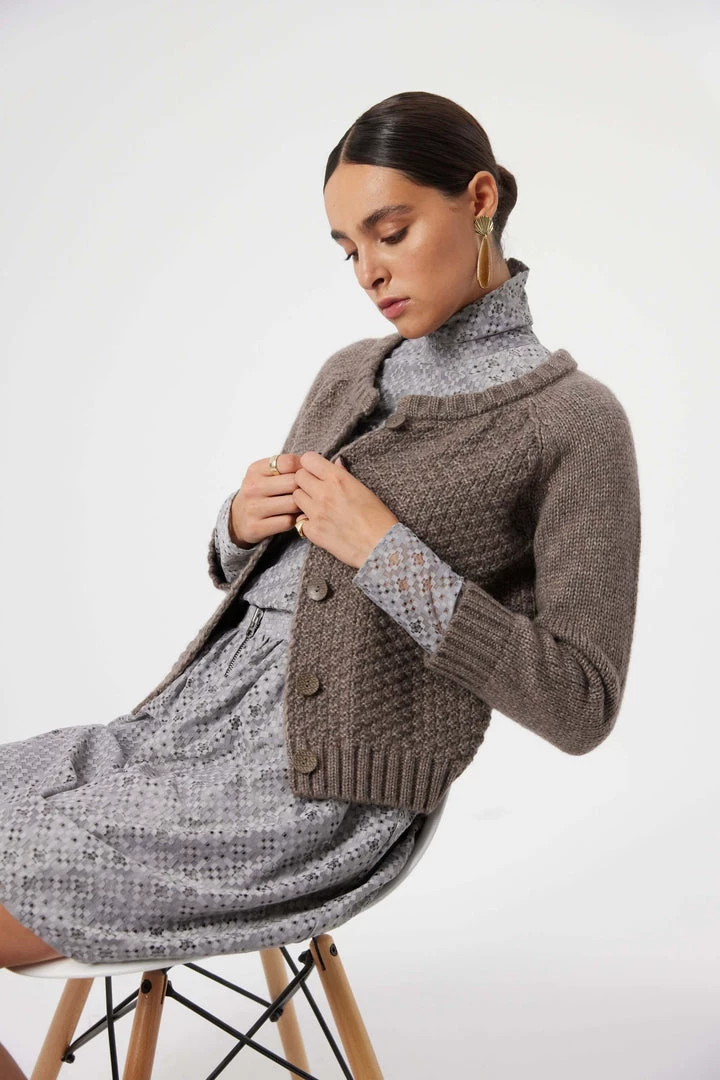 To prevent cold days, what could be better than a knitted cardigan? For this capsule, Heimstone has the Bristol Cardigan in Eiffel knit. This fitted and flexible knit is comfortable, designed in a taupe colour, reminding us of the unpredictable weather of Paris. The wool is quite thick and tight to keep you warm this season.