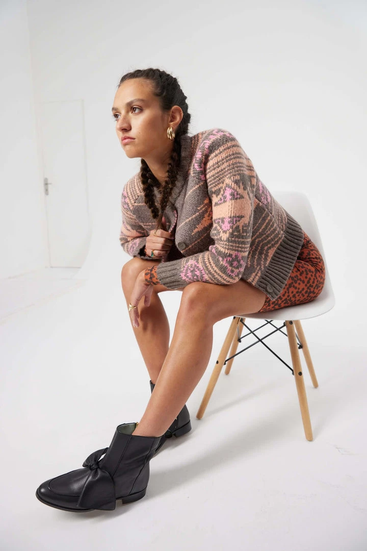 The Yellowstone knit is the centre of attention in this new capsule. Comfortable and soft, this cardigan braves the cold and complete every woman’s closet. Designed in three matched colours, peach, pink and taupe shades, this cardigan is a must-have piece. Made in a combination different fabrics, it has long sleeves and an adjusted cut that will envelop your body.