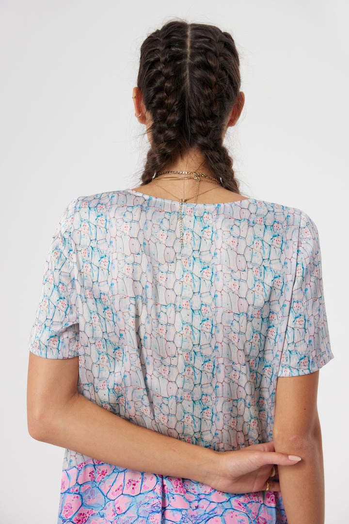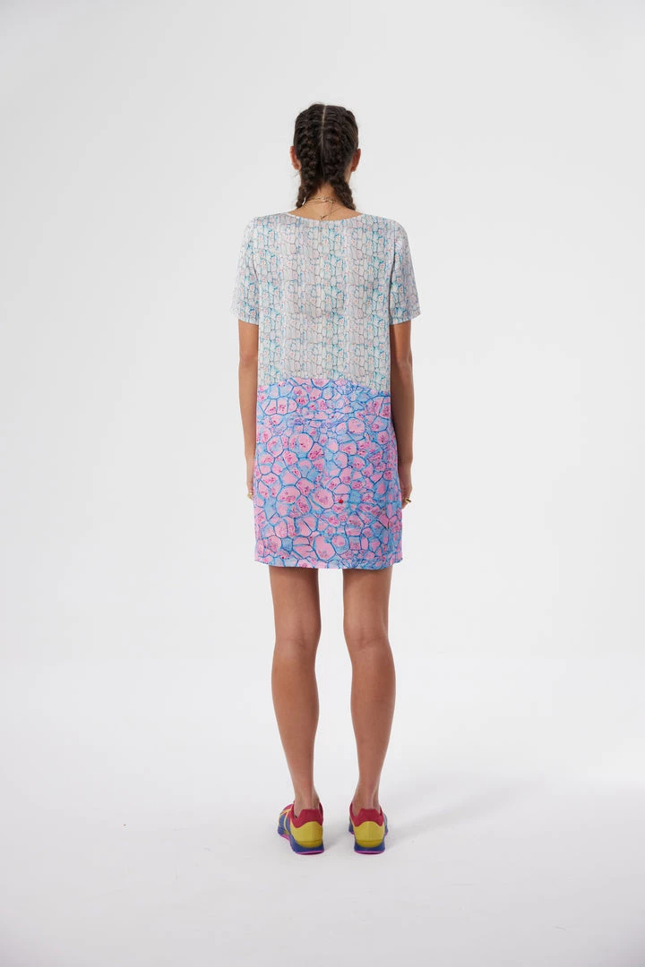 Creafted in a soft and bright polyester, the Egon dress will become your favorite piece for the vacations. It proudly features the duo of Lagoon and Poolside prints in complementary colors. The choice of the Poolside print keeps the skirt opaque. It features a deep V-neck with a slit in the front. Casual dress for the day, chic and colorful dress for the evening, this piece marries versatility and elegance and resplendent your silhouette.