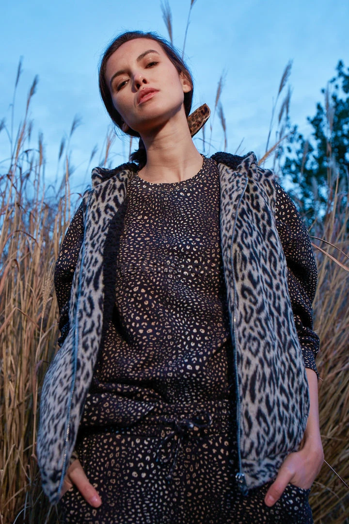 Our new activewear line is in and will refine the expression of your feminity. The Harlem Jumper is a loose sweater with a casual look. This time, find our Jumper with a raw and quiet leopard print. Soft inside, with an oversize shape combined with a simple and timeless print, this version of our Harlem jumper will become your favorite sweater to be worn at work, while sky-diving, smiling, dating or playing.