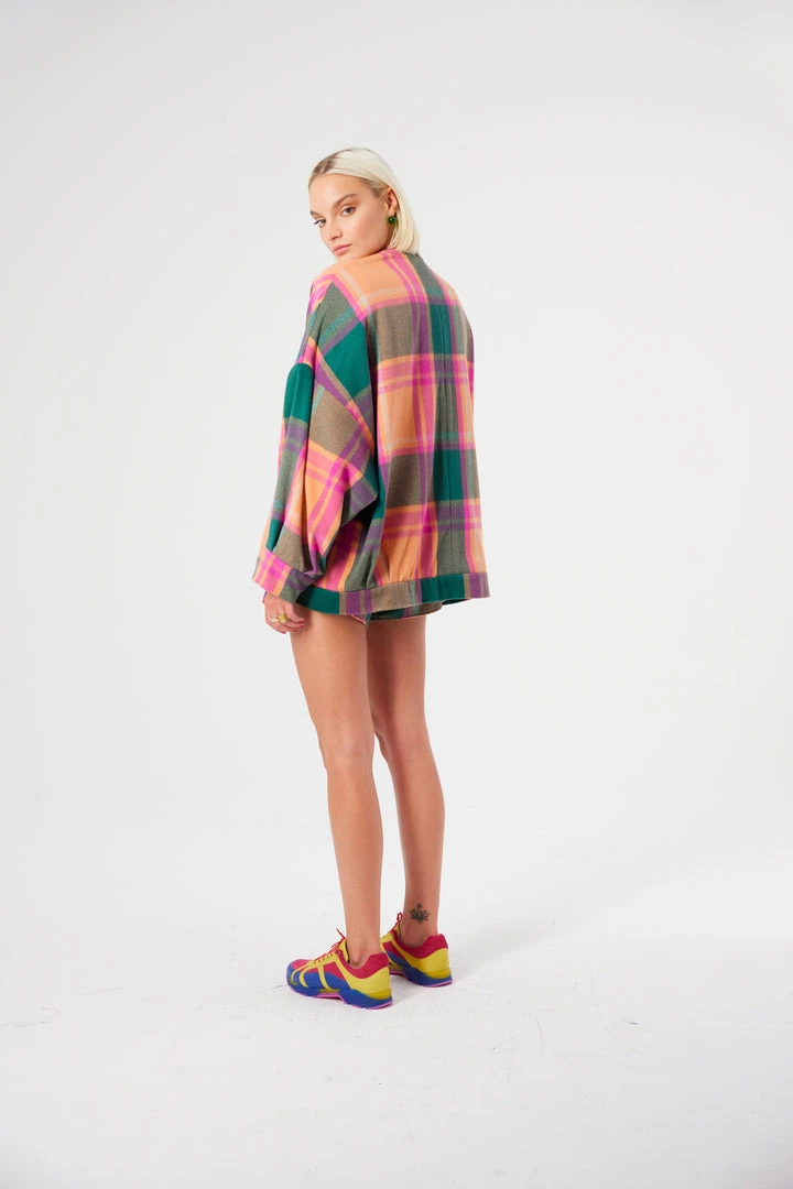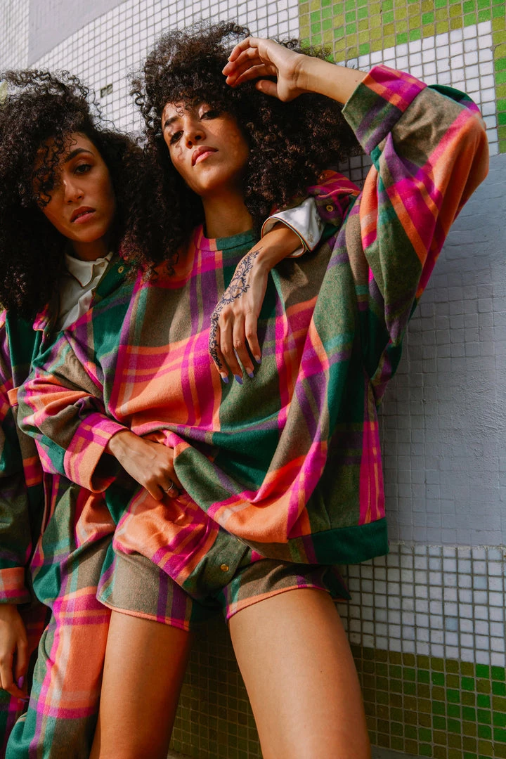 Welcome to our new cashmere Harlem Jumper in our District Rhum. The combination of colours and of soft cashmere create a tartan pattern that will definitely bring you on vacation. The fabric is light and vaporous, allowing it to have an airy fall.