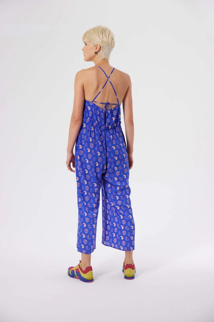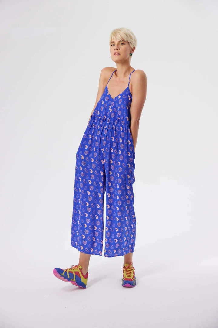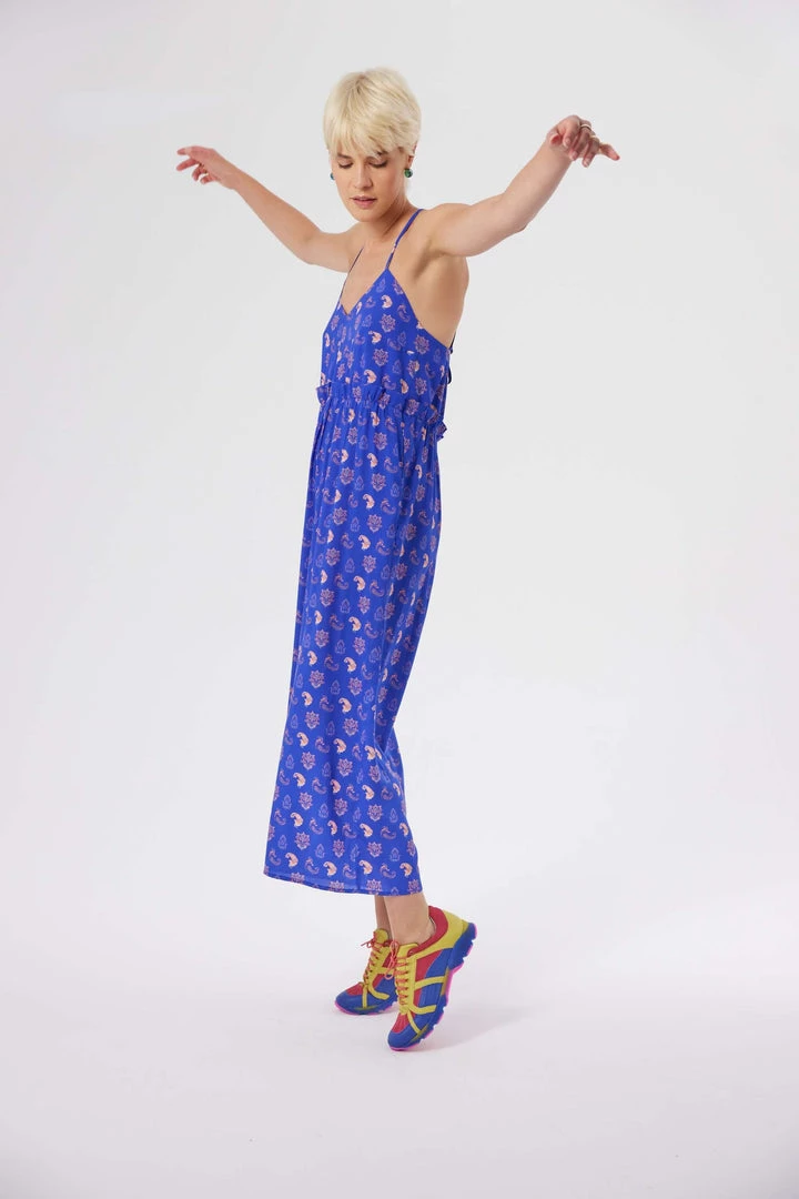 This season, the Lottie is back with its blue and pink Marahaja print. It features an empire fit with loose legs. The chest is tight, held by a series of thin prints An A and a strong outfit that will slightly dress up the look.