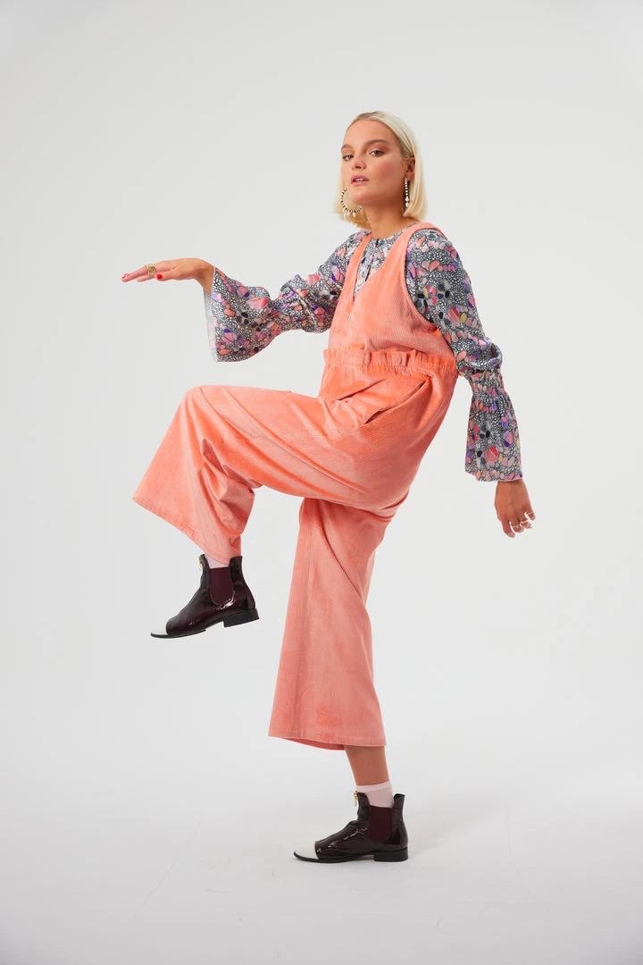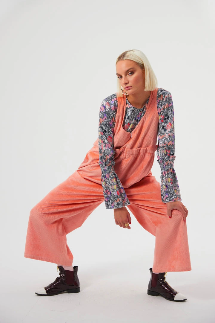 The soft color of pink Sakura enlightens our comfortable and irresistible Lottie jumpsuit, here to soften your wardrobe. Easy-to-wear, this piece has a transparent and thin zip on the front with a circle of ruffles at the waist. This clown-inspired outfit has a large waist and dresses up your whole body, like a glove. The straight cut lengthens your silhouette making it suitable for all body types.
