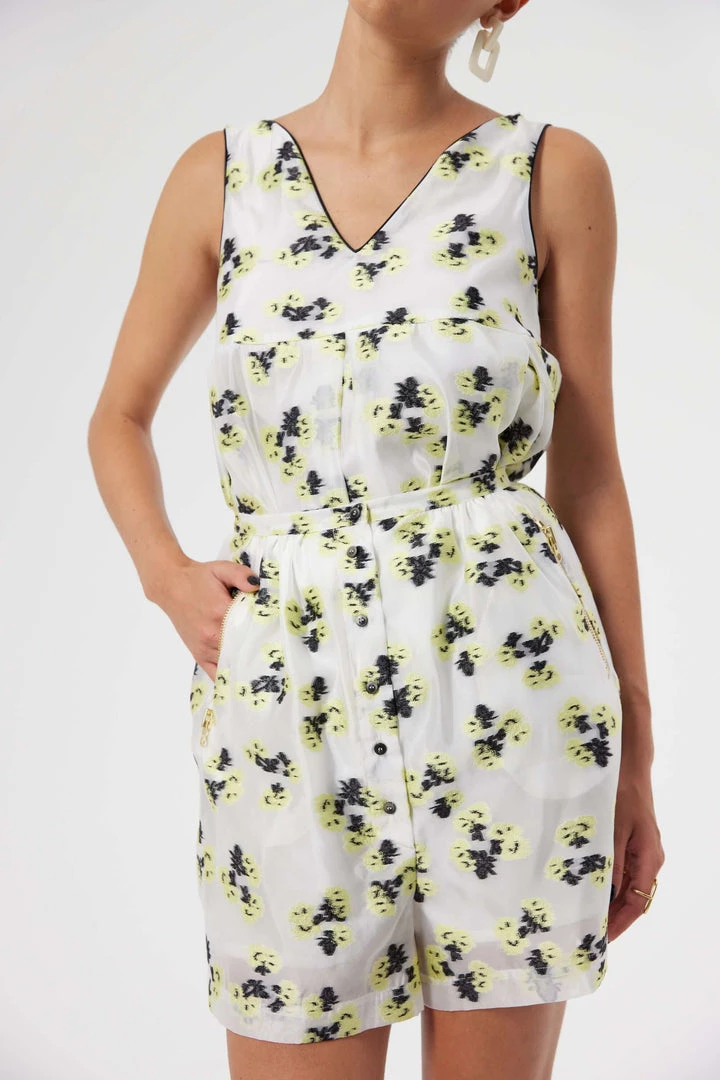 The Doll shorts may be the lighest one ! Crafted in an airy fabric, it sublimes your legs with our sophisticated Firefly embroidered lace, popping yellow, white and black dandelions everywhere. With a high waist and loose fit, it brings a casual and comfortable style to out outfits.