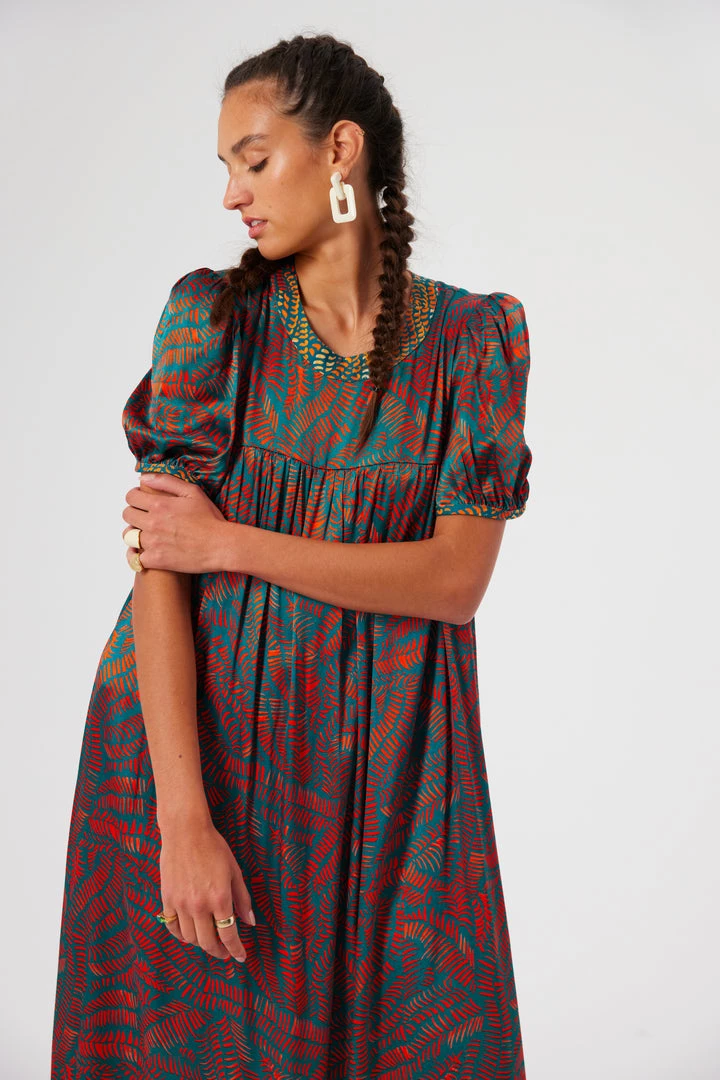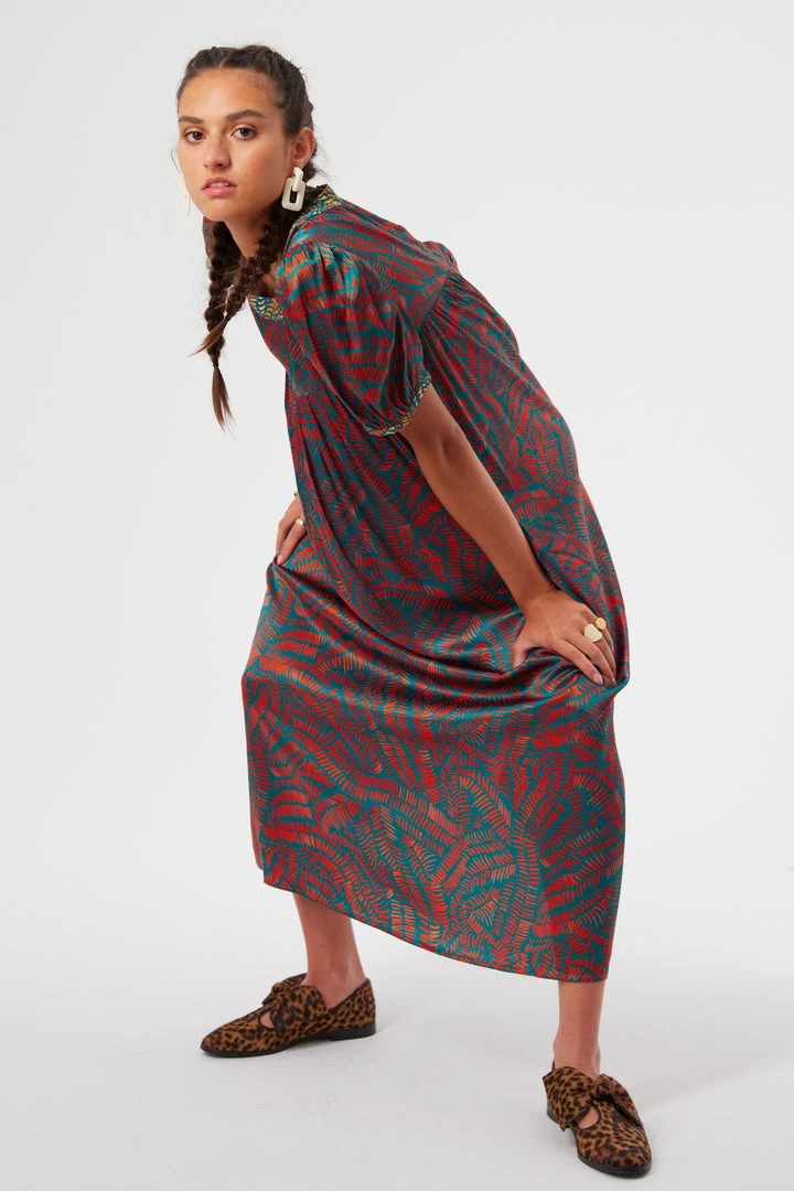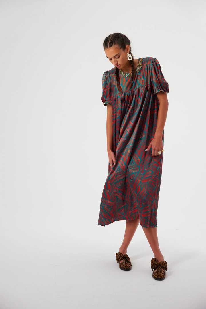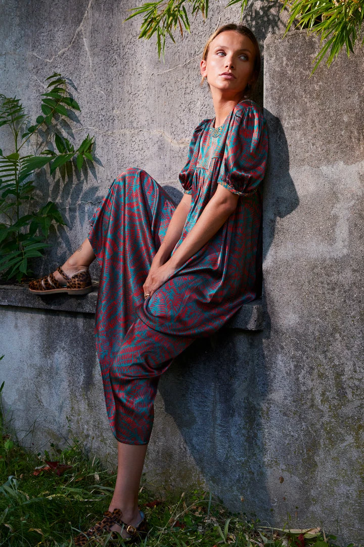 Made in a smooth and delicate fabric, the Gaya dress has these short puffy sleeves that remind us of girl’s dress. The long drape has this straight and vaporous fall, giving you a maximum comfort.
