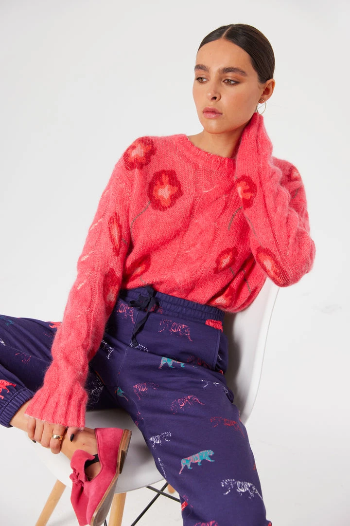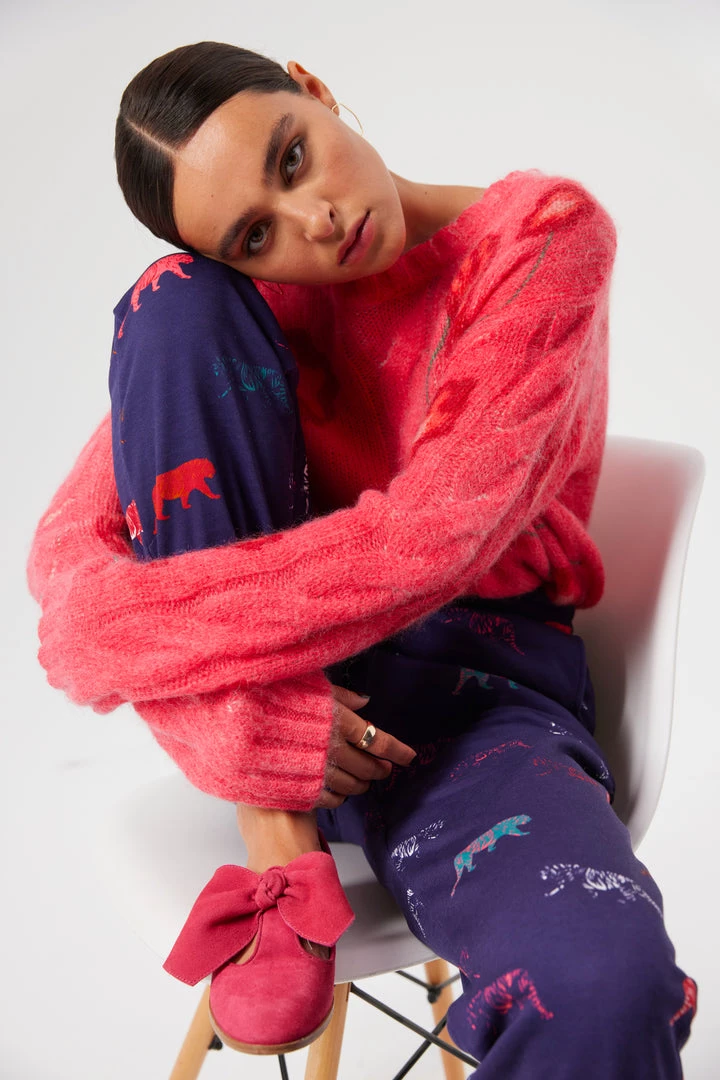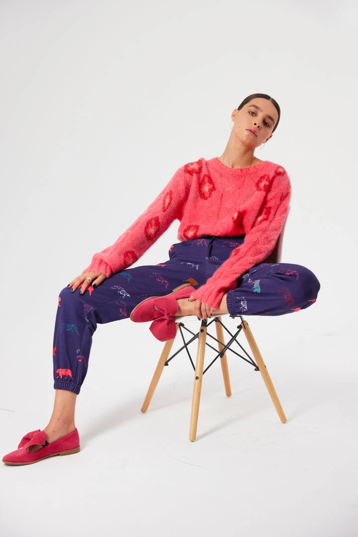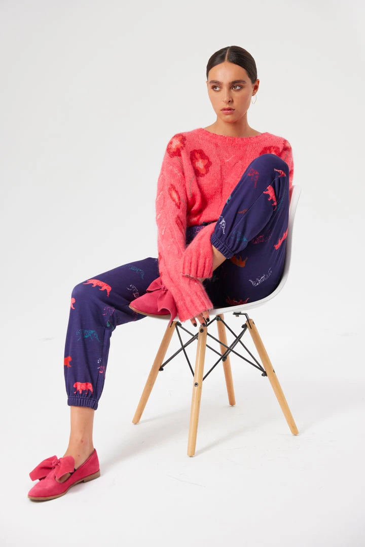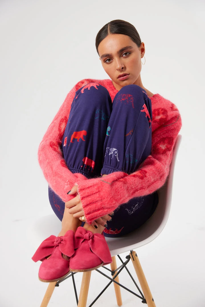 Comfy and stylish at the same time, the Kiara tracksuits are back for new adventures. Declined in a blue dark color with multicolored Tigers, these cozy and sweet pants lengthen your legs while caressing your skin.