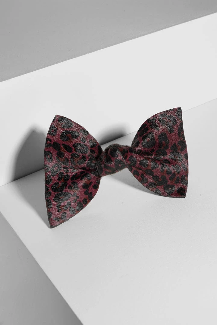 The mini hair clip in burgundy Leopard printed leather refreshes our collection of hair accessories. This is an asymmetrical bow that will perfect all your looks in every season. Easier to wear cause of the smaller length, this hair clip is beautiful for all hairstyles.Â