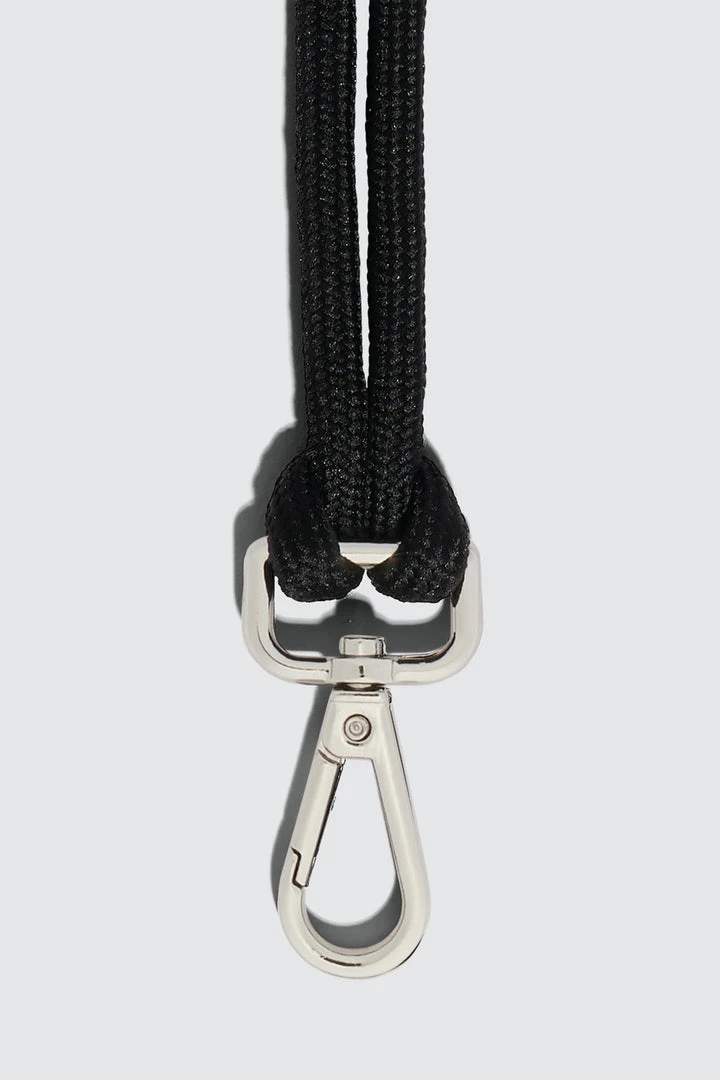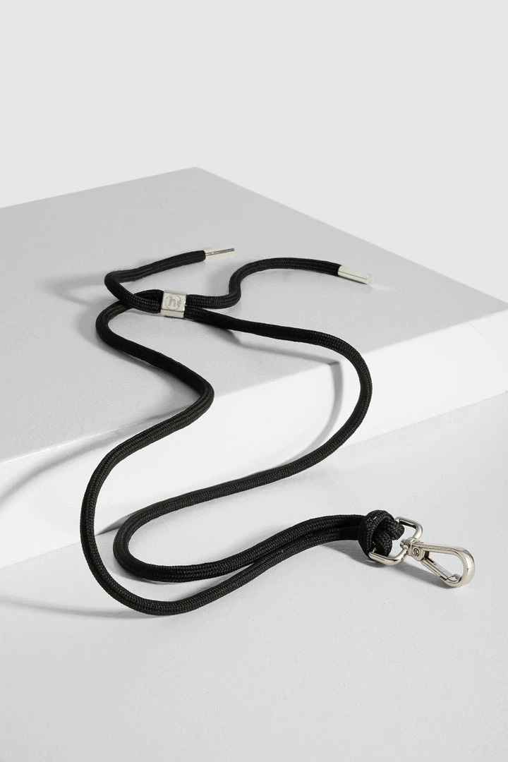 Customize your Minis with our newest adjustable black phone straps. Wear a maximum confort around your neck and hang out with our favorite Minis to carry your essentials. Made in woven polyester, it features a silver carabiner hook.