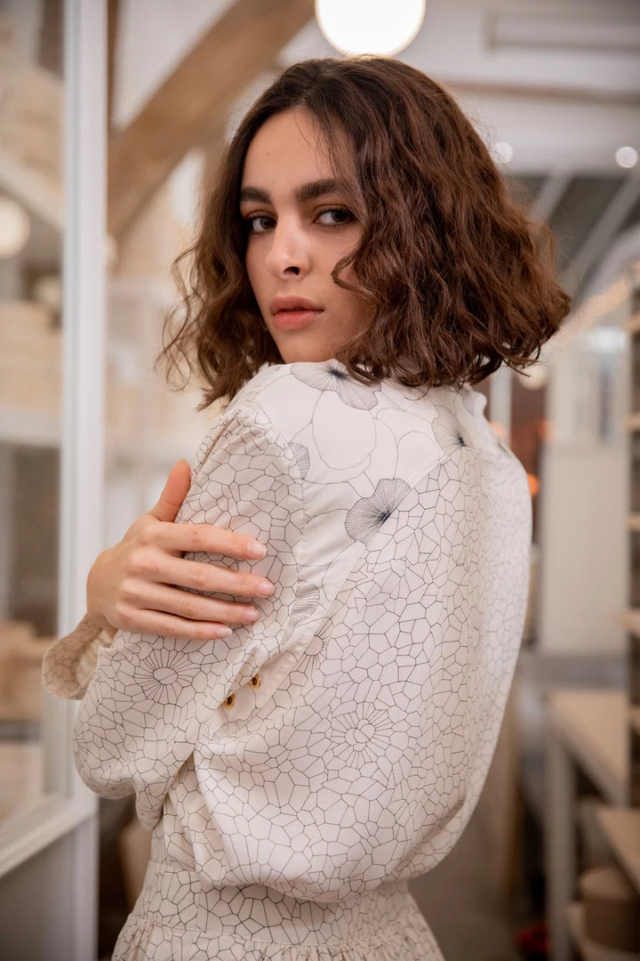Discover our new Tokyo shirt created especially for this collaboration. Inspired by Asian traditional outfits with its high mao collar, this wide shirt with fitted shoulders and wide sleeves will bring more style to your wardrobe. Pleasant to wear, it impresses with the brightness of its light sandstone fabric with a matte finish, ideal for the summer season. The design plays with a rich combination of the Dryness and Flower prints and adds sophistication to the piece. Avant-garde, it mixes delicacy and sportswear thanks to the smart breathable armhole with eyelets.